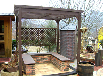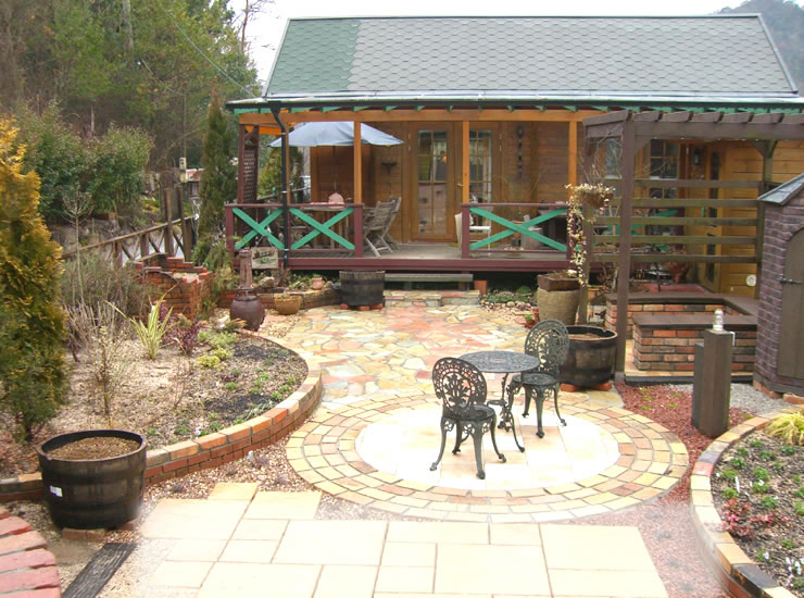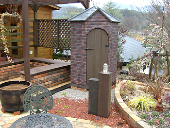 お庭の中でも、くつろいでパンやコーヒーをいただけて、虫の少ないようにと、レンガや自然石をたくさん使い植物の面積を少なくしました。今からまた少しずついろいろな木が大きく成長していくのが待ち遠しいですね。