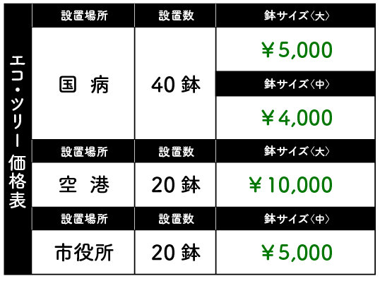 緑が身近にある・・・そんな心地よい空間を私たち、錦樹園はご提供いたします。岩国市役所、岩国錦帯橋空港、岩国医療センターの人の流れの多い場所にエコ・ツリーを設置することができます。設置場所及び価格につきましてはまずはお気軽にご相談ください。